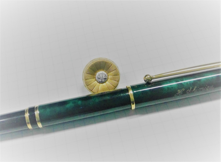 下の写真は,私の弁護士バッジと,司法修習時に私を指導してくださった先生から頂いた万年筆です。 よく見ると,万年筆に私の名前(H.Shimizu)が入ってるんですよ~。